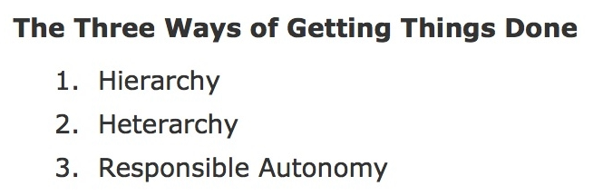Of course there are many ways people can organize themselves to get things done. Gerard Fairtlough, who worked for Shell for 25 years – the last 5 of which he served as Chief Executive of Shell Chemicals UK, wrote a wonderful book called: “The Three Ways of Getting Things Done”. He summarized these three ways.