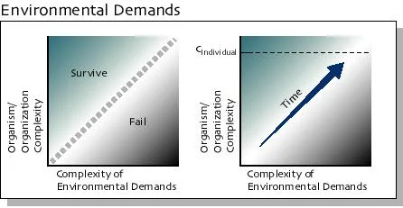 Briefly he notes that any system that can not match the external complexity of the environment with it’s own internal complexity will become overwhelmed by their environment. Thus, internal complexity is a requisite ability to match environmental complexity if the system is going to flourish in a changing environment.